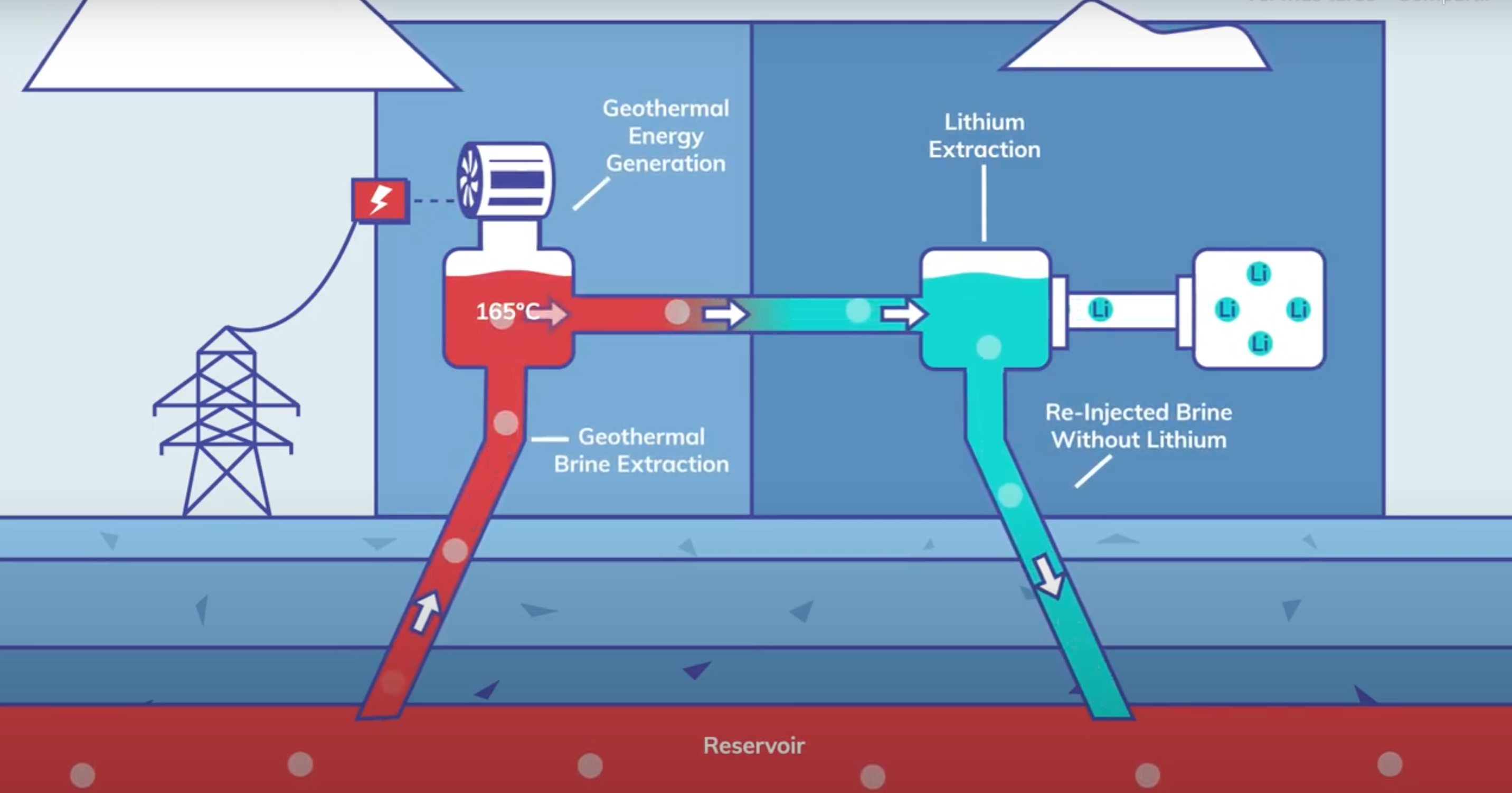 The process of getting the hot water from the reservoir for generating electricity and extracting the lithium, with zero emissions [Vulkan]