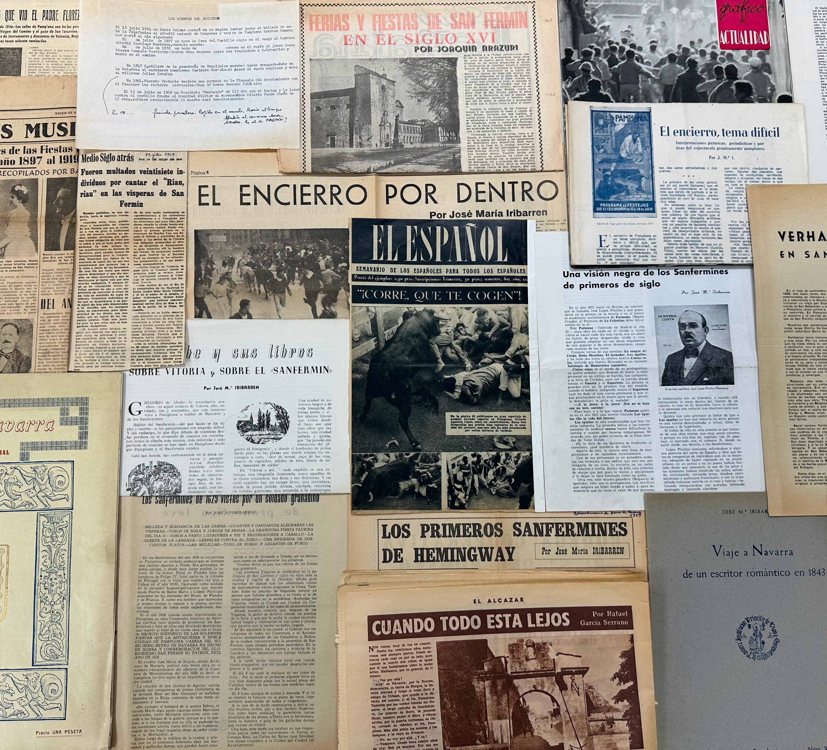 Escritos manuscritos que muestran el calado de las fiestas en la sociedad, así como imágenes antiguas de diversos eventos sanfermineros.
