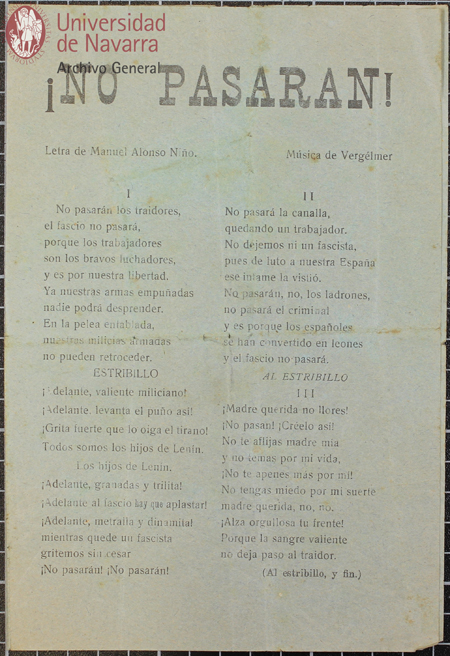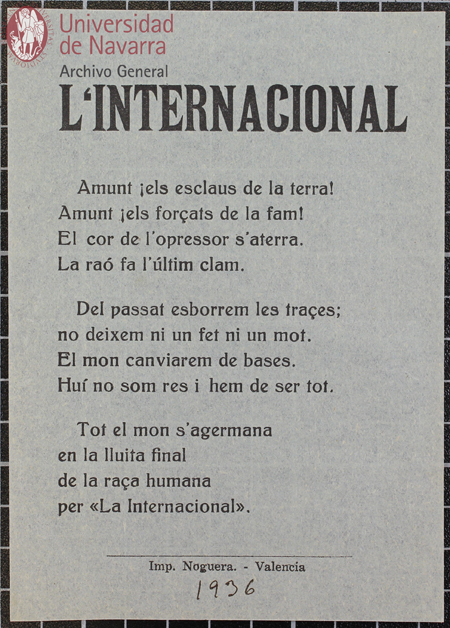 "Hijos del Pueblo" (Himno Anarquista). Comisión Organizadora Hospitales de Sangre y Guarderías de Niños del Sindicato Único Regional de Peritos y Técnicos Industriales C.N.T.-A.I.T. de Valencia