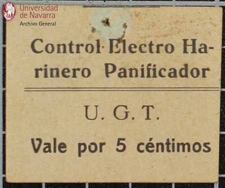 Título Vale por 5 céntimos del Control Electro Harinero Panificador, U.G.T., Don Benito (Badajoz)