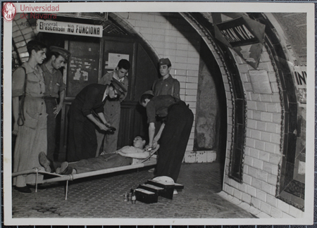 Fotografía de una improvisada enfermería en la Estación del Metro de Red de San Luis, Madrid, durante la Guerra Civil