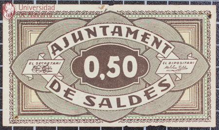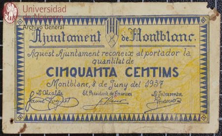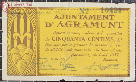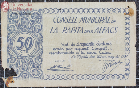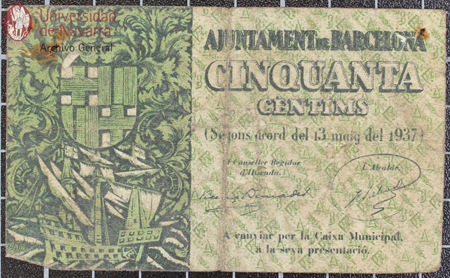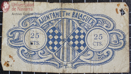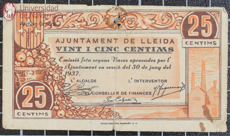 Billete de 25 céntimos de curso obligatorio en la ciudad y término de Lleida, emitido por el Ayuntamiento