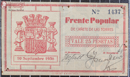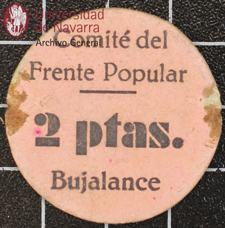 Vale por 2 pesetas del Comité del Frente Popular y el Ayuntamiento de Bujalance (Córdoba)