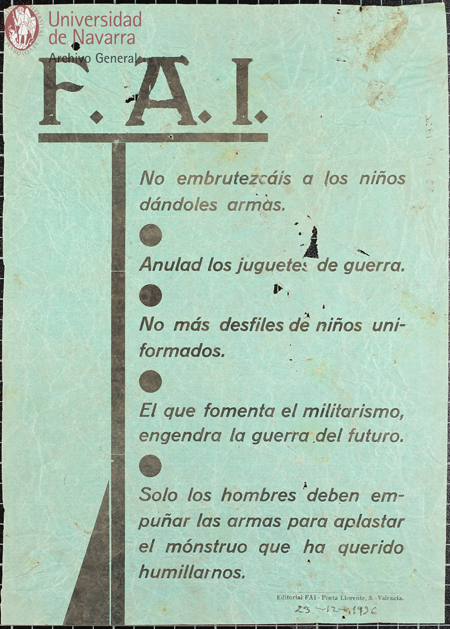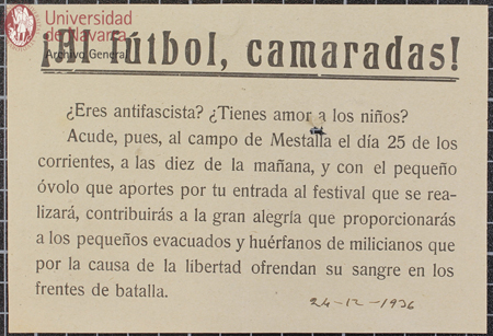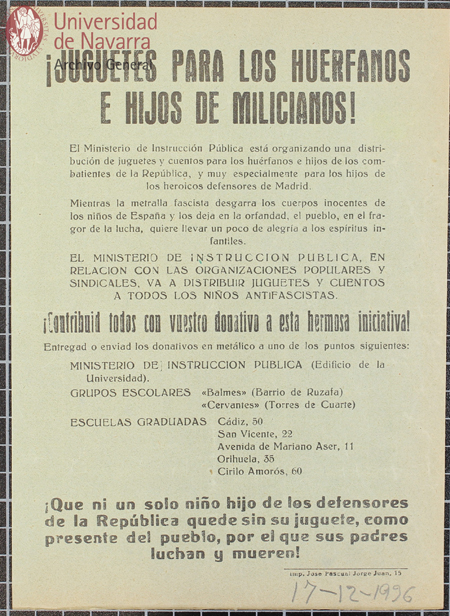 Pasquín titulado "¡Juguetes para los huérfanos e hijos de milicianos!"