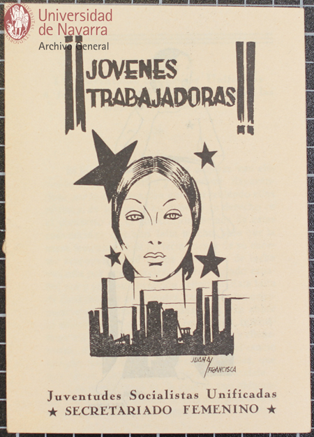 Pasquín titulado "¡¡Jóvenes Trabajadoras!!" del Secretariado Femenino de las Juventudes Socialistas Unificadas
