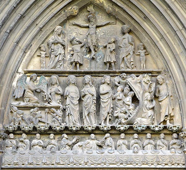 Tímpano de la portada del Santo Sepulcro, c. 1340.