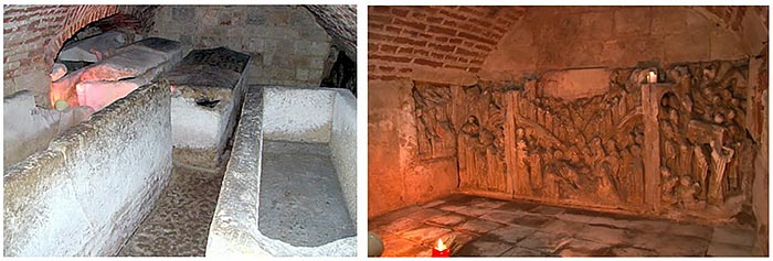 Sarcófagos y relieves sobre la Invención de las Reliquias. Amiens. Cripta de la iglesia de St. Acheul.