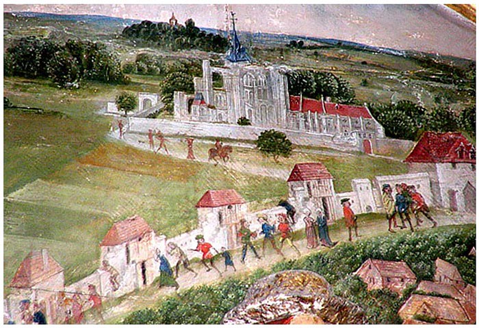 La Abadía de St. Acheul vista desde las murallas de Amiens. Pintura c. 1490. Catedral de Amiens.