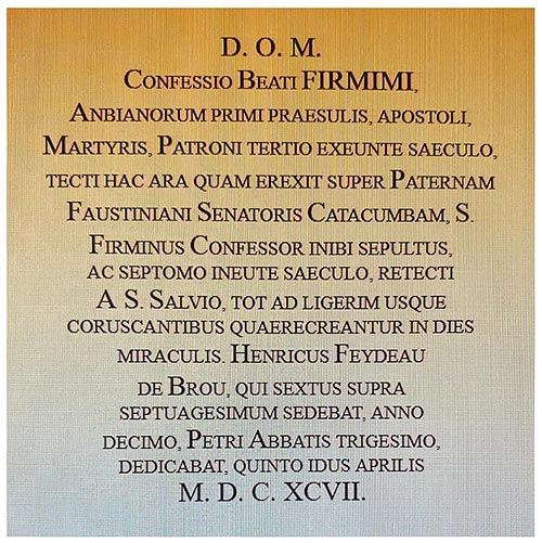Testimonio del hallazgo de la Confessio (1697). Amiens. Iglesia de St. Acheul.