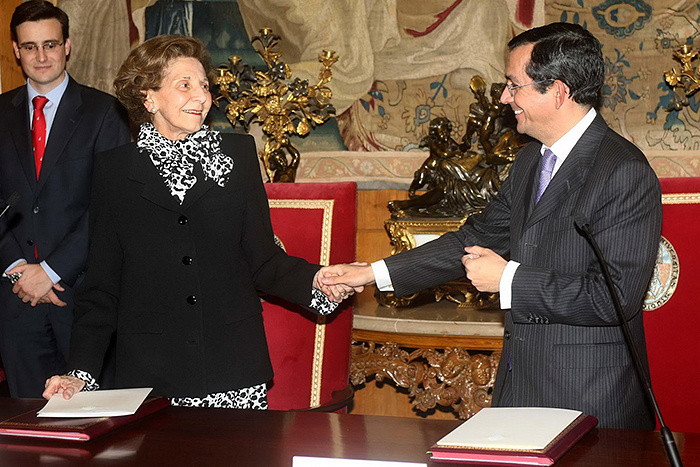 Firma de la donación de la colección a la Universidad de Navarra por María Josefa Huarte y Ángel Gómez Montoro