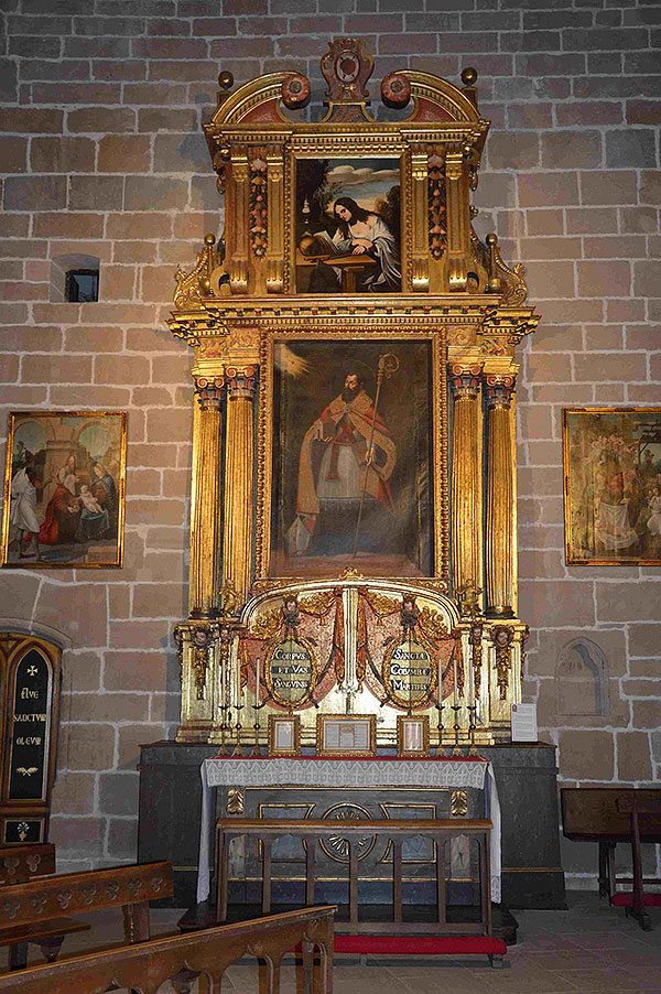 Algunos santos y advocaciones pueden explicarse por la existencia de altares y retablos anteriores de los que se tomaron prestados. Sucede así con san Fermín y san Gregorio y lo mismo con san Martín (capilla fundada por Martín de Zalba hacia 1377-1403) y san Juan Evangelista (capilla fundada por Sancho Sánchez de Oteiza hacia 1420).