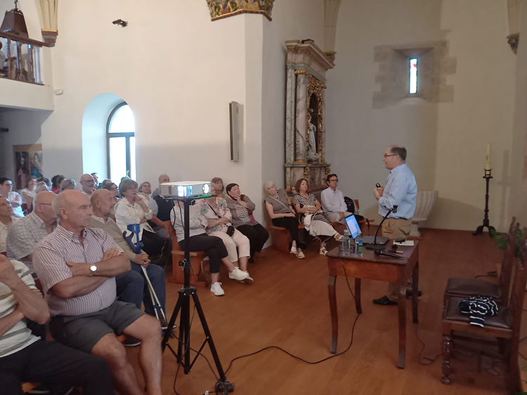 ¿Qué hacemos con nuestras iglesias?, se preguntó el ponente, para responder que depende directamente de nosotros, los vecinos del pueblo, seamos o no creyentes, dada la dimensión religiosa, cultural y social que el templo posee. En consecuencia, debemos concienciarnos de que son nuestras y están a nuestro servicio (al margen de la propiedad). Esto nos obliga a conocerlas, cuidarlas y legarlas a nuestros hijos y nietos en las mejores condiciones posibles.