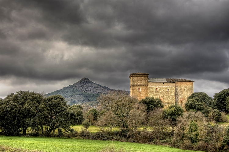 Vista general del Palacio de Iguzquiza, con Monjardín al fondo.