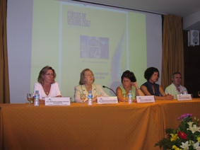 El acto de apertura del curso contó con la presencia de Dña. Mª Carmen Ochoa, alcaldesa del Ayuntamiento de Olite, doña Mª Victoria Abaurrea, concejal de Cultura, Dña. Concepción García Gaínza, directora de la Cátedra de Patrimonio y Arte Navarro, Dña. Asunción Domeño, profesora de la Cátedra y directora del curso, y D. Javier Corcín, profesor del Colegio Príncipe de Viana de Olite.