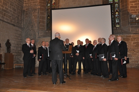 El curso de verano se clausuró con la intervención del director del mismo, don Ricardo Fernández Gracia, y de la delegada el área de Cultura del Ayuntamiento de Pamplona, doña Arantxa Zozaya, seguido del concierto en el propio refectorio catedralicio a cargo del Coro Santa María la Real de voces graves, dirigido por don Pedro María Ardáiz Aldea.