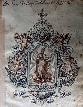 3.- San Fermín en el dibujo de examen del platero José Yábar, 1728