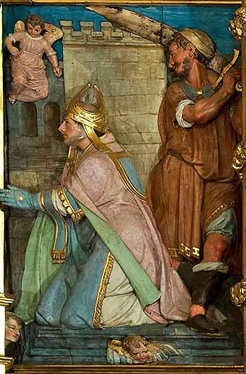 La peana dieciochesca argéntea reproduce en sus relieves algunas escenas de la vida del mártir y en la edición de los Anales de Navarra de 1766 se figura el hallazgo e invención de su cuerpo. Al siglo XIX corresponde la versión del martirio que nos dejó en el Salón del Trono del palacio de la Diputación Foral el pintor Alejandro Ferrán en 1865.