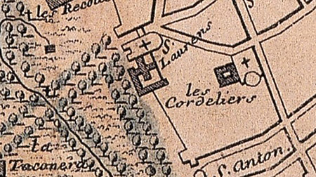 Los primeros documentos cartográficos de la ciudad de Pamplona, obras de geógrafos franceses, que representan la silueta de la recién construida capilla de San Fermín (1717) son los únicos documentos gráficos correspondientes al primer período constructivo de la misma (1696-1717), lugar principal de culto y devoción a San Fermín.