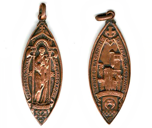 Según conocemos por la prensa, la Junta organizadora del III Centenario de canonización de san Francisco Javier adoptó entre sus primeros acuerdos el de acuñar una medalla para los peregrinos, encargando el diseño a Julio Arrieta. La medalla del peregrino tenía forma almendrada y, como nos relata el profesor Fernández Gracia, “la acuñación se hizo conforme a los diseños y sus inscripciones, haciendo constar las fechas conmemorativas y la razón de la acuñación –peregrinación al castillo–”.