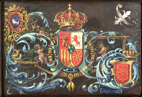 El libro con la encuadernación diseñada por Arrieta se encuentra en la actualidad en la biblioteca del Palacio Real de Madrid (signatura IV-E-633). El diseño de Arrieta se enmarca dentro de un estilo neobarroco. Sobre la portada del libro de piel oscura, un escudo real sobre cueros y con una gran corona ocupa el centro de la composición. Rodean al escudo el collar del toisón de oro y dos angelotes. Del escudo salen grandes hojas de acanto de color azul que rodean en la parte inferior derecha a un escudo coronado de Navarra. En la parte superior izquierda aparece un escudo de Pamplona, también coronado, rodeado de hojas doradas. En la parte superior derecha encontramos una flor de lis plateada. Una rama de rosas rosas une el escudo de la ciudad con el escudo real. Por último, destaca en el fondo la presencia de una fina estructura alargada donde se entrelazan las hojas de acanto. La firma del autor aparece en rojo en la esquina inferior derecha de la portada. En la contraportada, también de piel oscura, una gran flor de lis azul rodeada de un aro dorado ocupa la zona central.