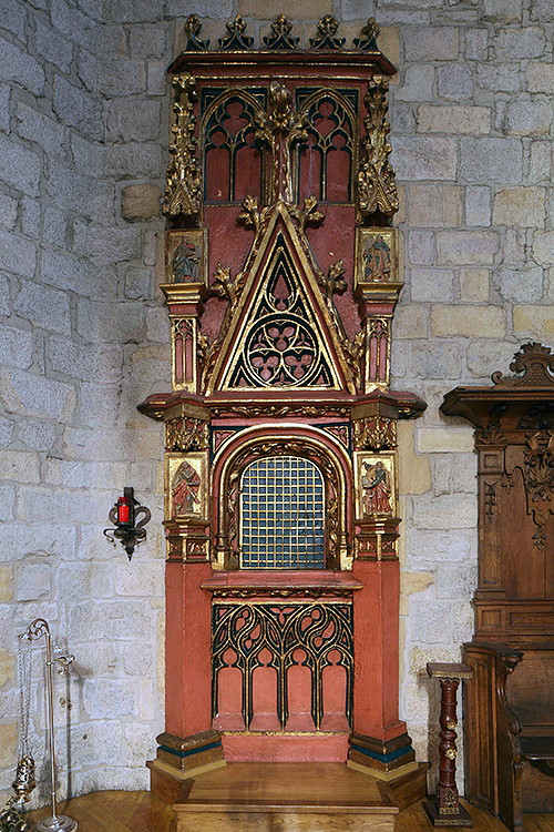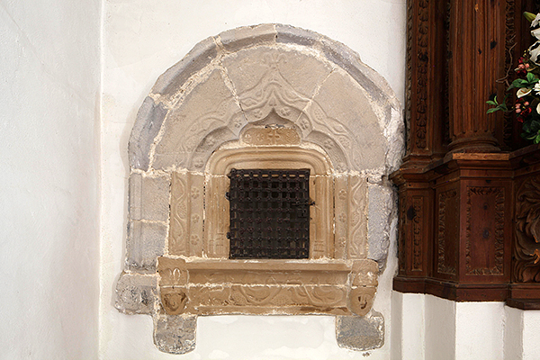 Fig. 10. Sagrario mural de la parroquia de la Asunción de Nuestra Señora de Urroz-Villa, procedente de la parroquia de Santiago de Galdurotz. Principios del siglo XVI. Foto: Justin Kroesen.