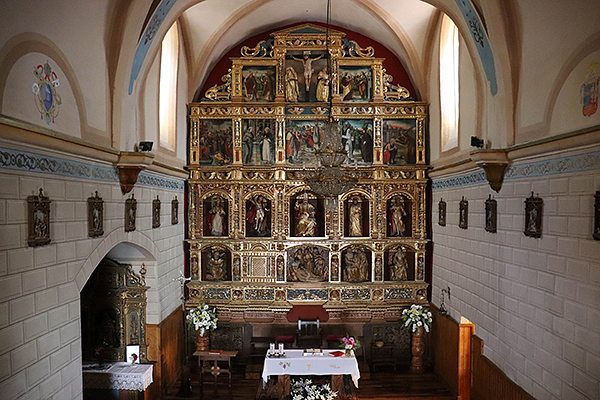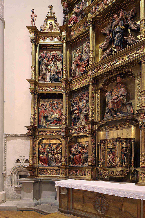 Fig. 4. Parte de la cabecera de la parroquia de San Esteban de Genevilla. El magnífico retablo mayor renacentista construido entre 1549 y 1563 oculta parte del sagrario gótico del muro. Foto: Justin Kroesen.