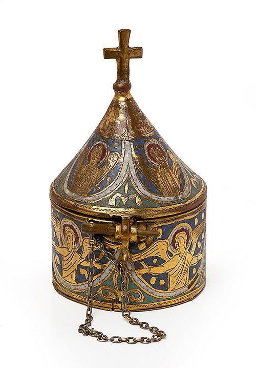 Fig. 6. Píxide de Esparza de Galar. Taller de Limoges o hispano, primera mitad del siglo XIII. Museo Catedralicio y Diocesano de Pamplona.