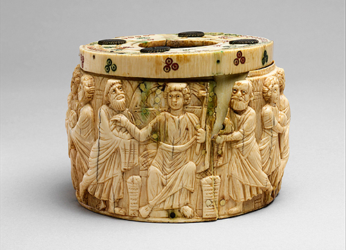 Fig. 7. Píxide con la Multiplicación de los panes. Siglo VI. The Metropolitan Museum of Art, Nueva York (17.190.34a), procedente de la parroquia de San Pedro de la Rúa de Estella. Foto: MET.
