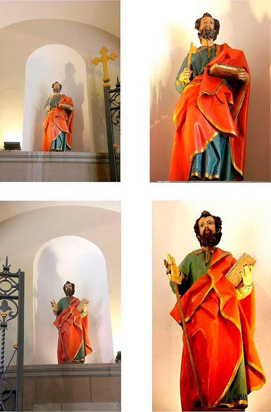 San Crispín, habilitado como san Pedro, y san Crispiniano, como san Pablo.