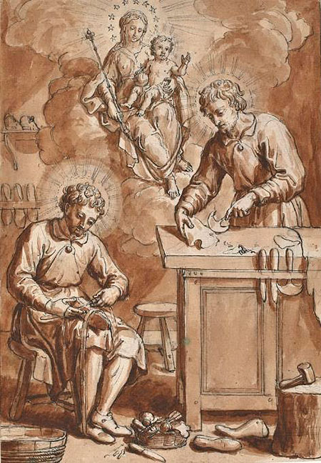San Crispín y San Crispiniano. Aguada, lápiz y tinta negra sobre papel,