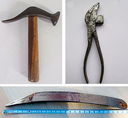 La iconografía de Crispín y Crispiniano se ha expresado en distintas posibilidades. Como mártires, en casos presentan palmas del martirio; predicadores del Evangelio, pueden portar el libro en la mano; como maestros zapateros, sostienen los utensilios del oficio: chaveta, pinza, martillo... No faltan escenas pictóricas o en relieve, donde se les representa confeccionando zapatos en un interior, confortados por la imagen o aparición de la Virgen con el Niño. En el caso pamplonés los conocimos con el libro en la mano izquierda y por lo menos uno, que supongo sea Crispín, con la chaveta en la derecha. Sería oportuno ayudarles a recuperar su personalidad cristiana e histórico-artística mediante una adecuada restauración técnica.