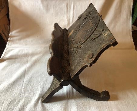 La pieza que se presenta este mes, un atril de altar, es una obra algo deteriorada, debido a lo cual dejó de utilizarse y cayó en el olvido. Afortunadamente, el profesor Ricardo Fernández Gracia puso en nuestro conocimiento la existencia de este atril, de gran interés por ser único en su género.
