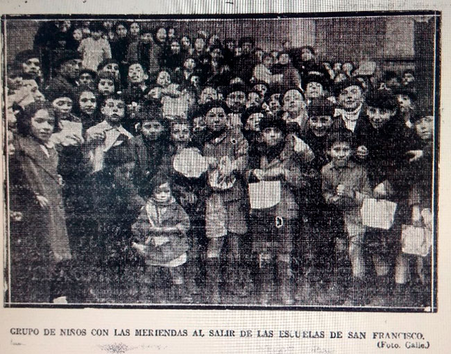Al día siguiente los periódicos locales daban cuenta del acto y el Diario de Navarra y La Voz de Navarra publicaban la foto de los niños con sus bolsas. El Pensamiento Navarro estaba mudo desde el 1 de febrero, cuando había sido suspendido por la censura militar –recordemos que transcurría el segundo año de la dictadura de Primo de Rivera–.