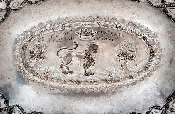 Recientemente se han incorporado a la colección del Museo de Navarra unas piezas con un significado especial para esta institución, ya que enlazan la colección con el uso primitivo para el que fue creado el edificio, Hospital General de Nuestra Señora de la Misericordia de Pamplona. Efectivamente, fue en la primera mitad del siglo XVI cuando don Ramiro de Goñi, arcediano de la Tabla de la Catedral de Pamplona, hizo una donación de parte de sus bienes para la construcción de un hospital que, al hilo de lo que estaban haciendo otras ciudades, unificase los existentes en Pamplona. Dicho hospital quedó bajo patronato del ayuntamiento de Pamplona y estuvo abierto hasta el año de 1932, en que pasó a incorporarse al nuevo Hospital de Navarra, que se comenzó a construir en 1906 gracias al mecenazgo de doña Concepción Benítez. Como patrono del Hospital, el Ayuntamiento se encargó de su gestión y mantenimiento, y es en este contexto que hay que incluir la ejecución de cuatro azafates o bandejas de plata, realizados en 1798 por el platero Pedro Antonio de Sasa con las armas heráldicas de la ciudad. Tras la incorporación al Hospital de Navarra, estas obras pasaron al nuevo edificio, donde eran usadas por la congregación religiosa que atendía a los enfermos, siendo entregadas por las últimas religiosas a la dirección del Hospital tras su marcha en 2020, que a su vez las depositó para su conservación en el Museo de Navarra. De esta forma, casi 225 años después, estas cuatro bandejas regresan al edifico al que fueron destinadas, aunque en esta ocasión, con una función distinta.