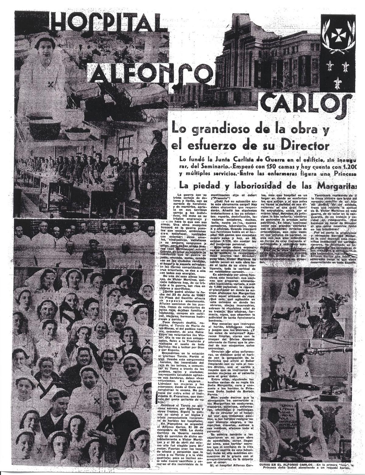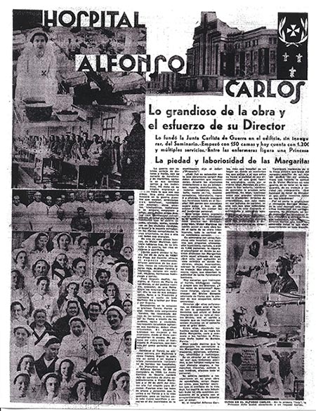 El reportaje buscaba mostrar el potencial del movimiento carlista en la retaguardia, la implicación y dinamismo de sus mujeres, así como documentar el modélico funcionamiento de su “hospital insignia”; aspectos todos ellos que, junto a la dotación de modernos medios científicos y tecnológicos –así como al carácter voluntario, altruista e interclasista de su personal–, lo convertían en el espejo idóneo a través del que mostrar al mundo las “bondades” del modelo social propugnado por el carlismo, algo que anteriormente, y por otros medios, el movimiento carlista ya había aplicado con relativo éxito entre 1873-1876 en torno al Hospital de Irache y la figura de la reina doña Margarita de Borbón-Parma. Fue en aquella ocasión el antídoto contra la “leyenda negra” alimentada desde medios contrarios nacionales e internacionales, que tildaban al carlismo de movimiento fanático, reaccionario y contrario a todo progreso.