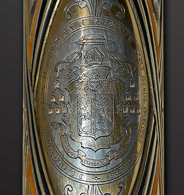 Báculo del obispo Eustaquio Ilundáin y Esteban, detalle del escudo de armas del prelado.