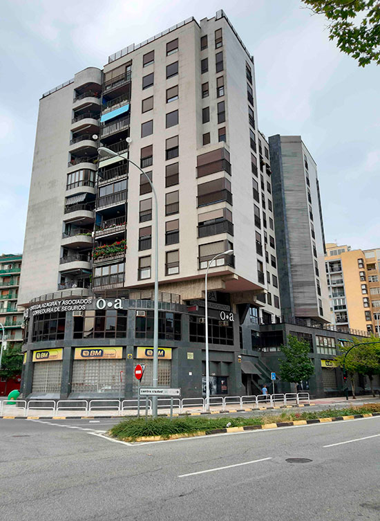 Francisco de Inza. Edificio San Juan en c/ Monasterio de la Oliva, 9 de Pamplona