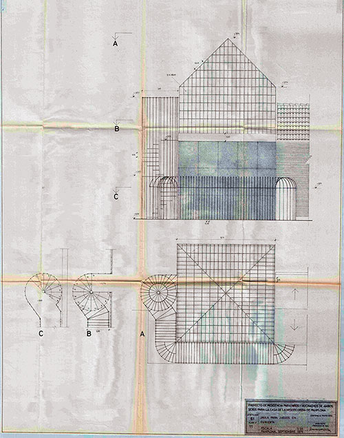Francisco de Inza. Proyecto de residencia de niños y muchachos para la Casa de Misericordia de Pamplona. Jaula para juegos en la cubierta (Archivo Contemporáneo de Navarra)