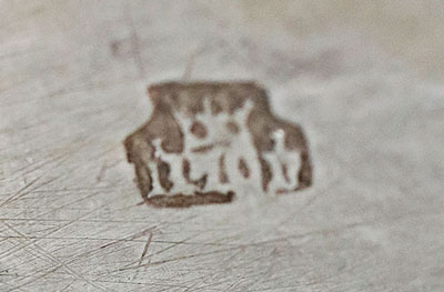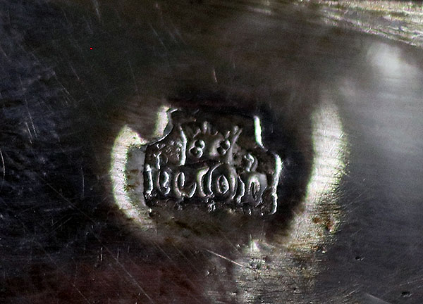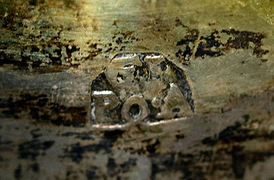 Presenta estampada la misma marca de localidad de Pamplona, acompañada de la burilada, que la pieza anterior, PPLON en caracteres góticos y con tilde en la primera P y la N, surmontada por corona, que se corresponde con el primer punzón de localidad de la capital navarra, empleado, tal y como hemos dicho, entre 1423 y 1574. Al contrario que la pieza anterior, no presenta marca de autoría, por lo que desconocemos al platero que lo realizó. Como ya se ha mencionado, estilísticamente responde a una variante del modelo del cáliz de Burgui, modelo que perduró en el tiempo y del que quedan numerosos ejemplares. Al contrario que en el de Burgui, donde los besantes situados en el nudo de manzana son incisos y de perfil romboidal para adaptarse a la curvatura de la manzana, en el cáliz aquí estudiado son circulares, de mayor desarrollo, y alternos con hojas lanceoladas. Similares a este son los cálices de Reta y Urdanoz, con la rosa más desarrollada y cenefa de celdillas en la base, o los de Góngora y Liédena, que no presentan rosa. Fueron muchos los plateros del centro de Pamplona que realizaron obras siguiendo estos modelos de cáliz y varios de ellos muestran la misma variante de marca de localidad, aunque ninguno de ellos presenta un vínculo estilístico estrecho que nos permita adscribir la pieza aquí estudiada a un platero concreto.