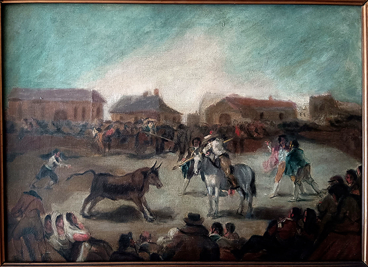 La presencia de la copia de la colección Roas Castro atribuida a Eugenio Lucas Velázquez, la realizada por Francisco Lameyer y esta de la colección navarra confirman el atractivo que tuvo para los pintores “La corrida de toros” de Goya, para algunos autores uno de sus trabajos más hermosos19, que cautivó a los artistas del siglo XIX y principios del XX, seguramente porque en ella se condensan muchos de los elementos del universo goyesco (mundo taurino, ambiente rural, tumulto, personajes grotescos) que caracterizó la veta más brava de la imagen romántica de España20.