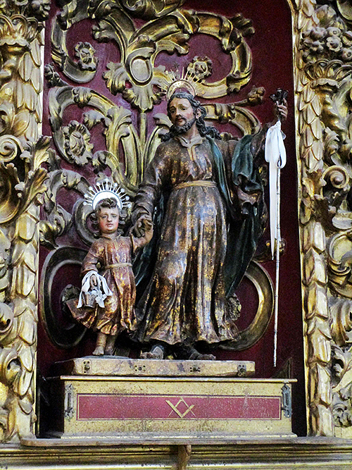 En el siglo XVII predominan en Navarra, como en el resto de España, las esculturas que presentan al santo de la mano con el Niño Jesús, como la de Cintruénigo, mientras que en la centuria siguiente se generalizó el modelo en que el padre recoge, amorosamente, al Niño entre sus brazos.