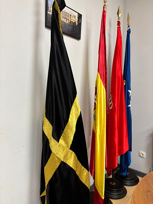 La primera referencia a una bandera que aparece en la documentación que hemos podido revisar se remonta a 1725. Aquel año fue de suma importancia para la historia de la localidad y de su patrimonio. Después de un gran crecimiento demográfico, sostenido en el tiempo durante las cinco décadas previas, el patronato de la iglesia parroquial decidió ampliar y recrecer el templo dedicado a santa Eufemia. Justo unos días antes de que el maestro de obras, Juan Antonio Jiménez, comenzase la demolición, el alcalde y los regidores de la villa efectuaron el traslado de las enseñas municipales que pendían de aquellas paredes que se iban a demoler. En el retablo del santo Cristo colgaba “una bandera vieja y rota con su asta de palo y la punta de hierro (…) y solo se puede conocer en dicha bandera unas fajas doradas y coloradas”. Esta bandera fue recolocada sobre la puerta grande de la iglesia.