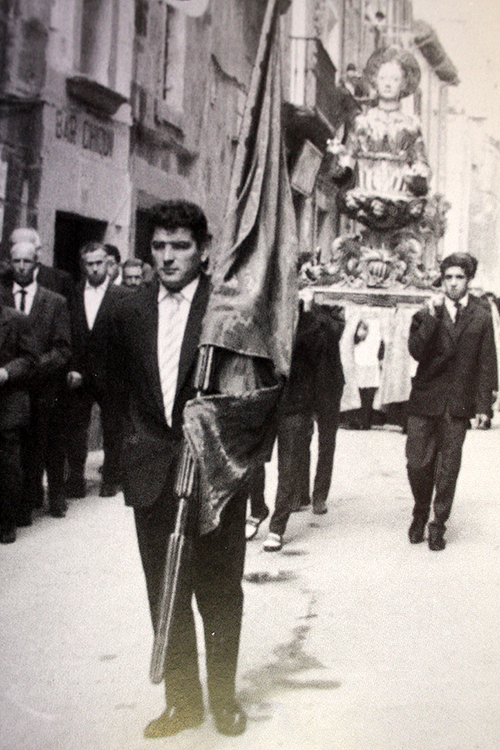 El abanderado Rafael Chasco en el traslado de Santa María Magdalena a la parroquia, 21, julio, 1963.