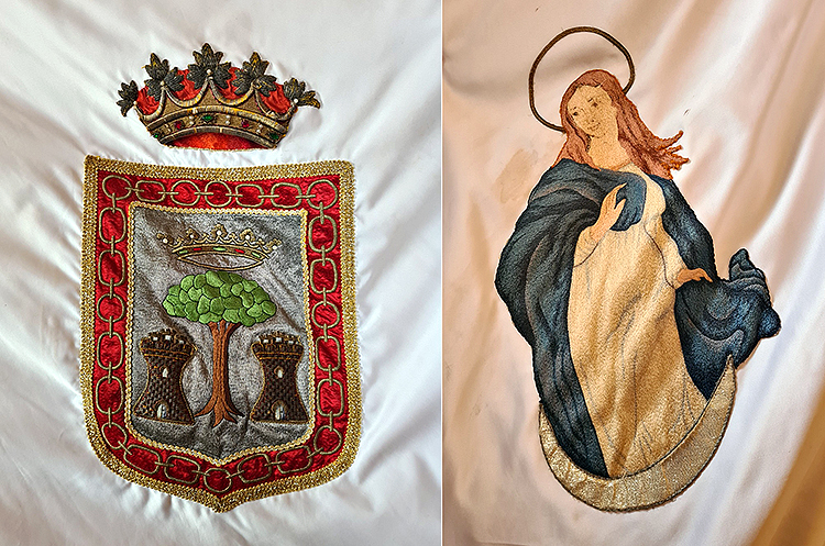 Bandera que acompaña a la Corporación. Escudo de la ciudad y la Inmaculada Concepción, patrona de Olite