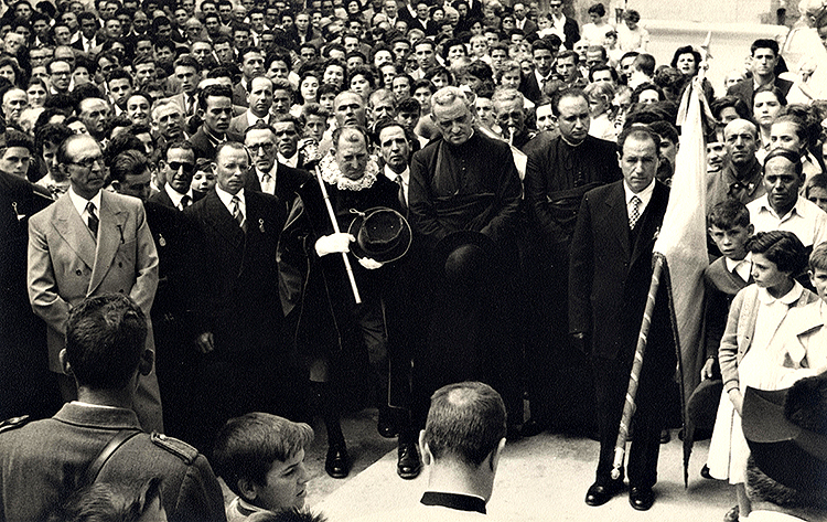 Inauguración del monumento a D. Manuel Carrera en 1957. Abanderado Santiago Eraso
