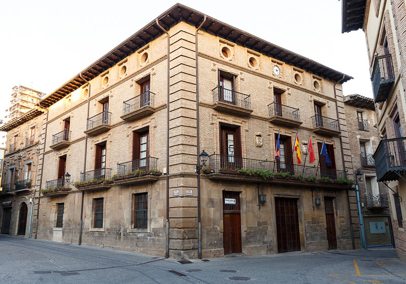 En el año 1560 se adjudicaron a Domingo de Peñarreta, mediante subasta, unas obras presupuestadas en 625 ducados para derribar la antigua casa consistorial y construir una nueva en el mismo lugar; obras no llegaron llevarse a cabo. En 1576 se tasaron unos terrenos en la actual plaza de los Fueros para la construcción de la mencionada casa, aunque no está claro si el edificio actual, finalmente ubicado en la plaza de España, fue construido específicamente para albergar el Ayuntamiento o si tenía un uso distinto antes de ser destinado a funciones gubernamentales.