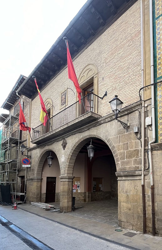En Lumbier, la casa consistorial se erige majestuosa en la Calle Mayor, rodeada de impresionantes fachadas que atestiguan la prosperidad del pueblo desde la Baja Edad Media hasta el siglo XVIII. Entre tantas residencias señoriales, destaca la casa consistorial –construida con piedra, ladrillo y mampostería– por sus singulares características como edificio público.