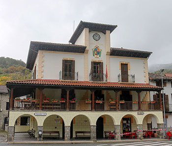 La actual casa, junto al puente de la entrada de Roncal, fue inaugurada en 1956. Es una bella edificación de tipo montañés con líneas sencillas y apariencia robusta. Tiene dos plantas rematadas por un potente alero y se cubre con un tejado a cuatro aguas, de gran inclinación, con tejas planas. En la fachada principal se emplea la piedra en los soportales, esquinas, cornisa y alrededor de las aberturas de entrada y ventanas rectangulares, mientras que el resto está enlucido.