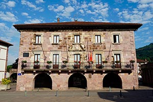 En ese sentido, en 1695 las autoridades del valle decidieron construir un nuevo edificio municipal sobre terrenos y edificios que habían pertenecido al monasterio de San Salvador de Urdax, junto a la vieja parroquia de Santiago. Las obras se ejecutaron durante dos años (1696-1698) por mano del cantero Juan de Arozarena, el carpintero Martín de Iturbide y el herrero Juan de Alberro. En el pliego de condiciones para su edificación se especificaba que debía inspirarse en el diseño del palacio Jarola de Elbetea, financiado por el capitán Miguel de Vergara, que se había enriquecido en América y que ocupaba en aquel momento la alcaldía del valle.