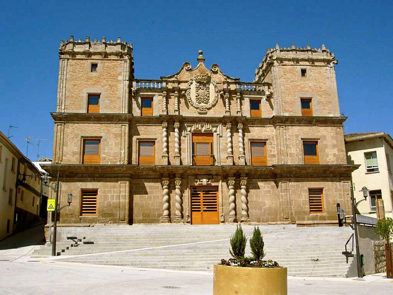En origen se concibió como palacio urbano en los límites de la villa, si bien a partir de la segunda mitad del siglo XX se construyeron las edificaciones en su entorno y se dedicó la parte trasera al local y patio de las escuelas municipales. La restauración, realizada entre 1994 y 1996, sustituyó por entero la carpintería de la fachada, en una decisión poco afortunada.